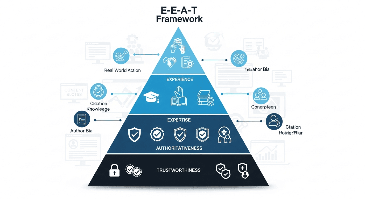 E-E-A-T (Experience, Expertise, Authoritativeness, Trustworthiness) has become the quality baseline for all digital visibility channels—traditional search, AI Overviews, and large language model outputs.