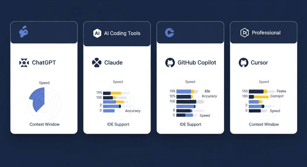 Cost Analysis: For budget-conscious developers, GitHub Copilot Free or ChatGPT’s free tier provide solid starting points. For professional development, GitHub Copilot Pro at $10/month or Windsurf at $15/month offer strong ROI when considering time savings on repetitive tasks.