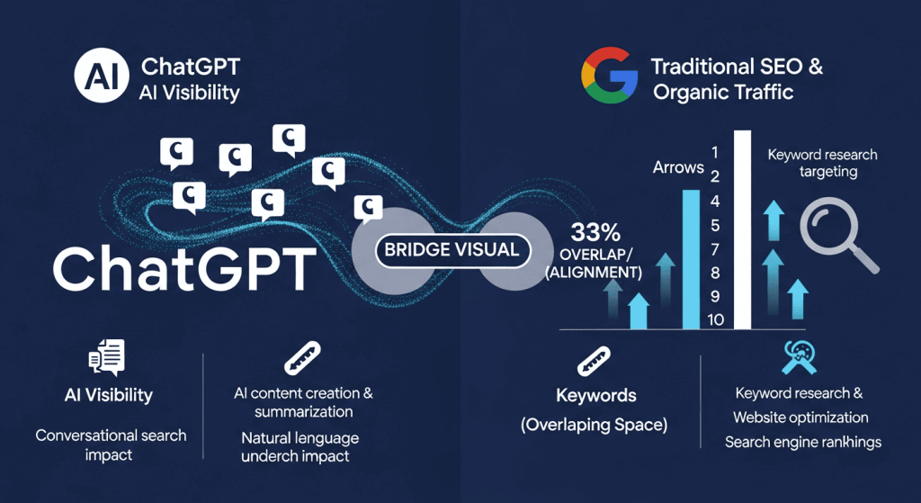 The most important insight for ChatGPT SEO optimization is this: traditional SEO best practices now have double value. Since ChatGPT’s search results share significant overlap with Google’s rankings, optimizing for one platform increasingly benefits the other.