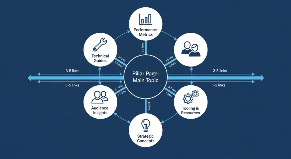Your pillar page should be your hub—the page that receives the most internal links. Every cluster page should link back to the pillar with relevant anchor text. Additionally, cluster pages should link to related cluster pages when contextually appropriate.