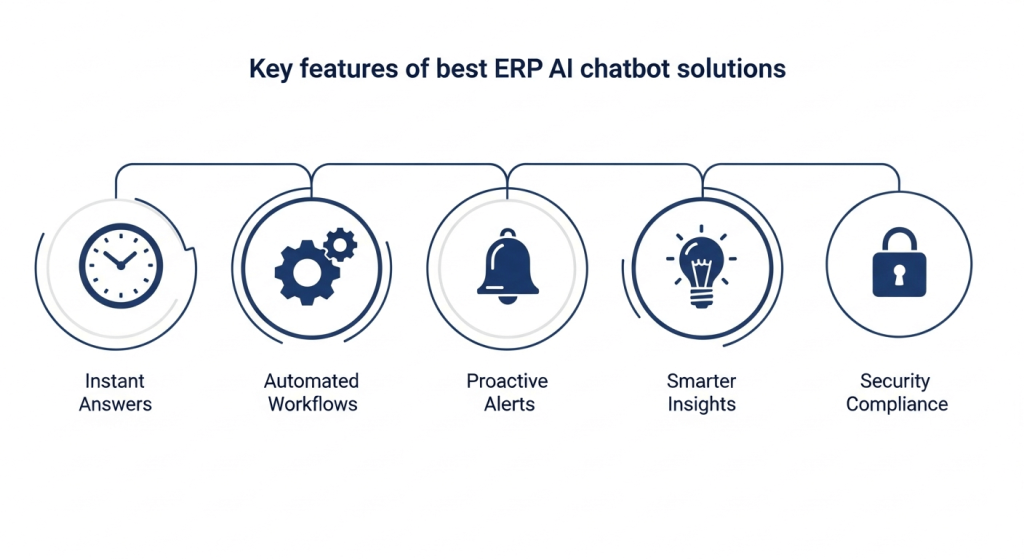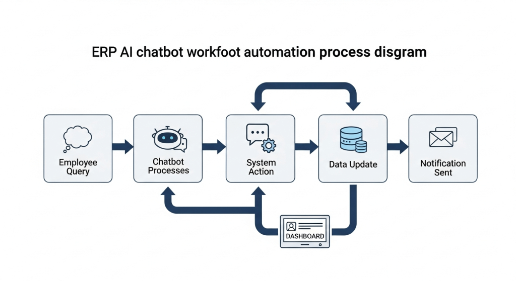 An ERP AI chatbot is an advanced conversational agent that connects directly to your organization’s ERP system. Unlike earlier bots, these AI-powered interfaces use natural language processing to understand context, initiate automated workflows, provide instant answers, and proactively highlight potential issues before they escalate. They can pull real-time data from finance, HR, supply chain, CRM, and other modules, delivering actionable insights to employees 24/7.
